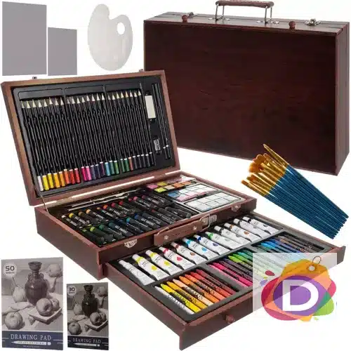 Комплект за рисуване в дървено куфарче, 128 части – Код D1853