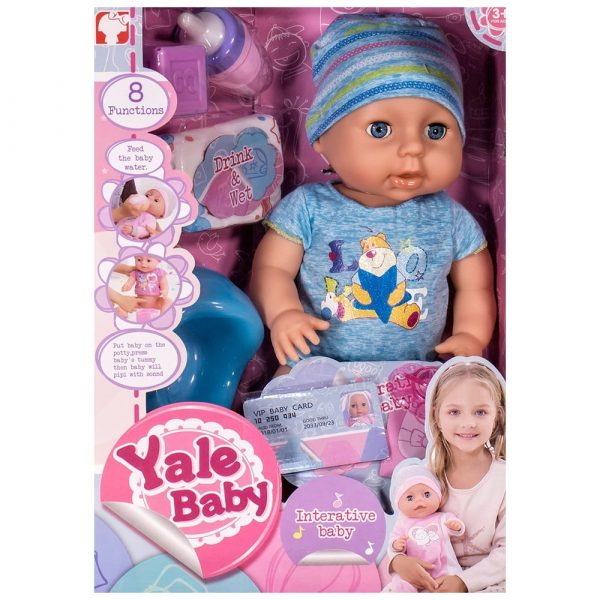 Комплектът съдържа бебе с височина 40 см, гърне, биберон, шишенце, пелена, лъжичка, чинийка и VIP карта.
