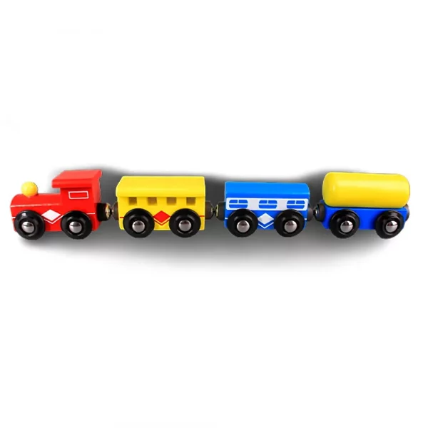 Комплектът съдържа локомотив и три вагона, които се захващат един за друг посредством магнити.