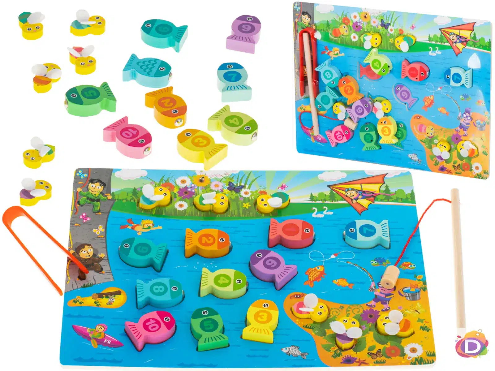 3. ИГРА НА УМЕНИЯ ЗА РИБОЛОВ – Всяка риба е снабдена с магнит, трябва да я хванете с въдица, включена в комплекта. Играта ще развие способността на вашето дете да се концентрира и да се научи на търпение.