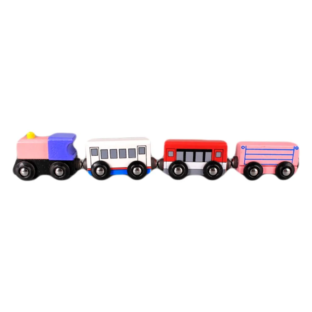 Комплектът съдържа локомотив и три вагона, които се захващат един за друг посредством магнити.