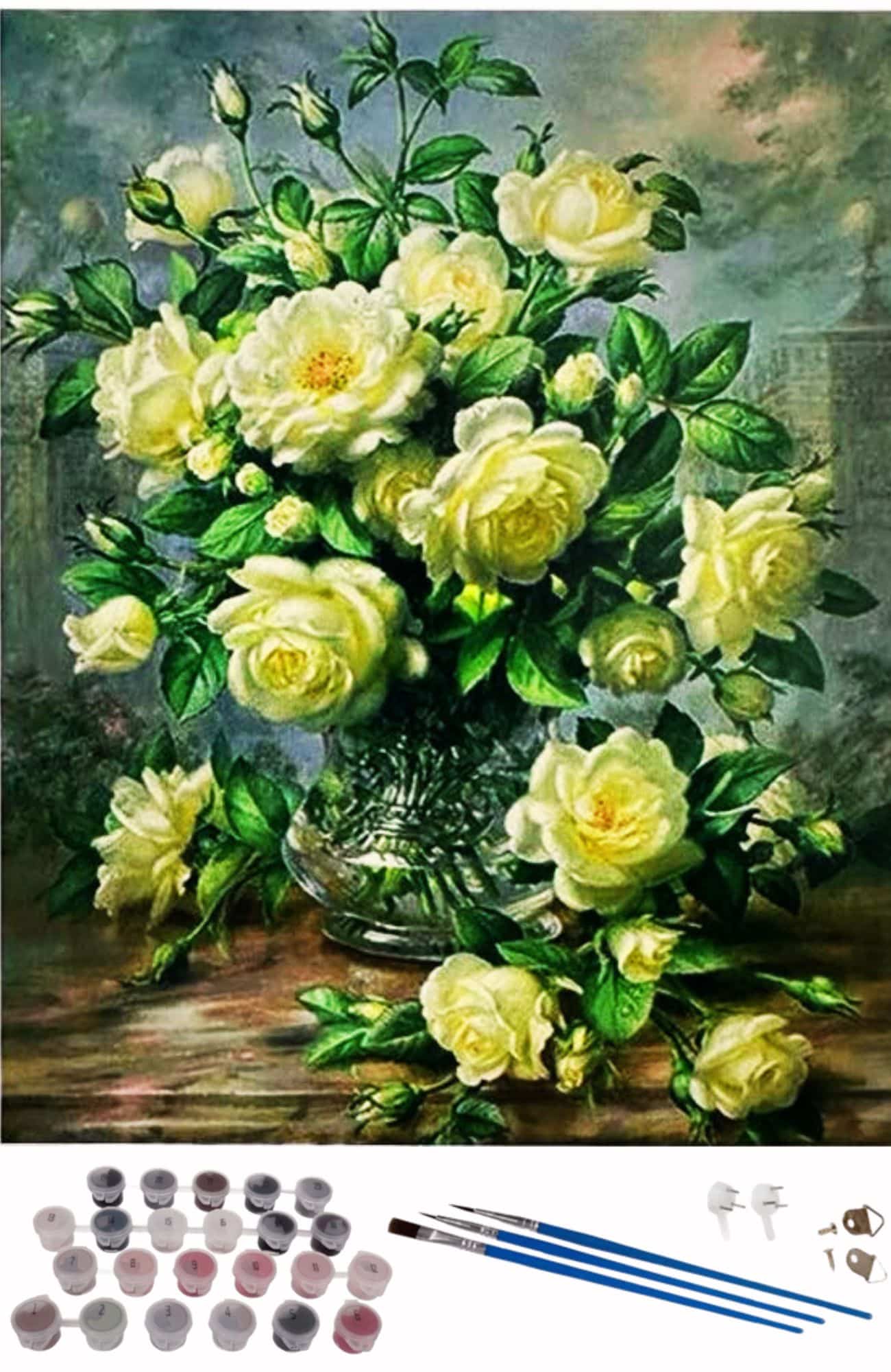 Картина за рисуване по номера „Бели рози“ 30х40см с подрамка – Код B0024