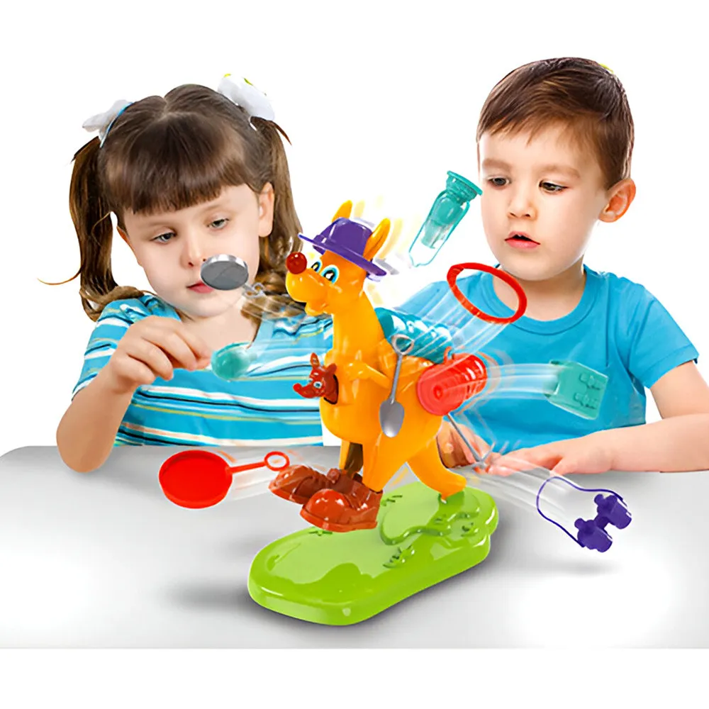 Играчите се редуват внимателно да отстраняват по един аксесоар от кенгуруто.