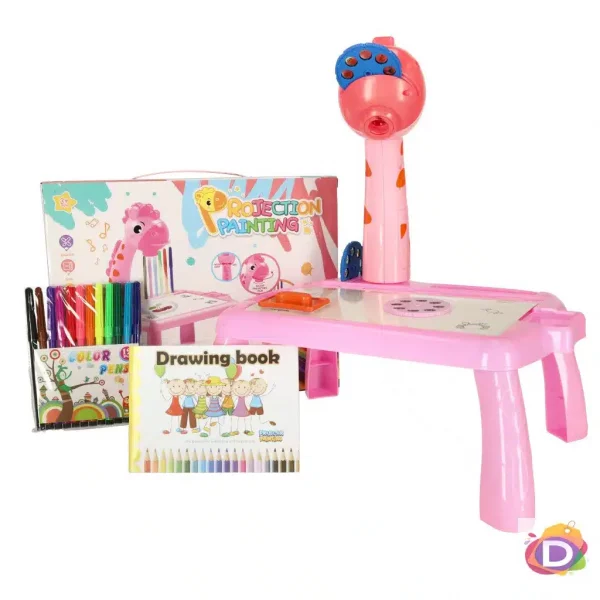 Детска масичка за рисуване с проектор, музикална Жираф, розова - Код D2101