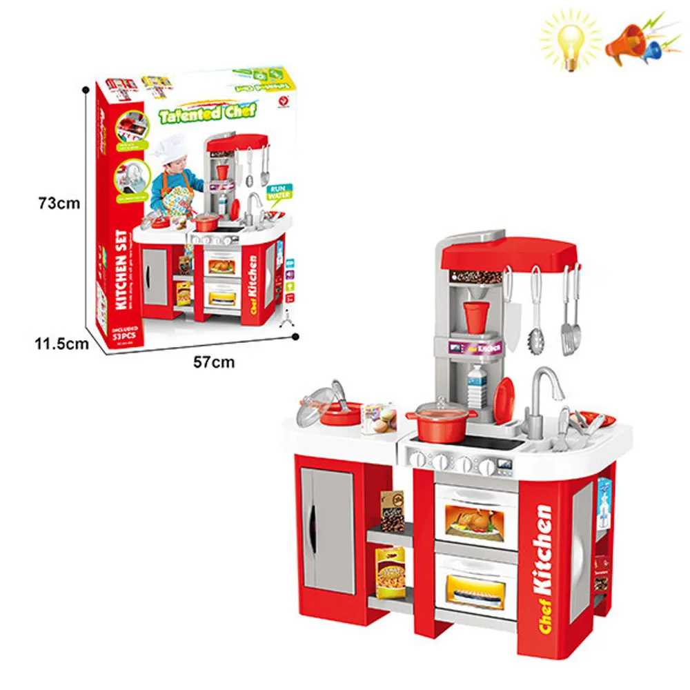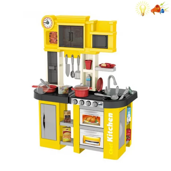 Детска кухня със светещи керамични котлони, реалистични звуци и мивка с течаща вода (72.5см) – Код W4487