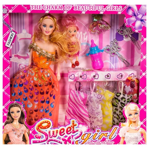 Основни характеристики: Детска кукла майка с детенце и допълнителни рокли – Код W2855