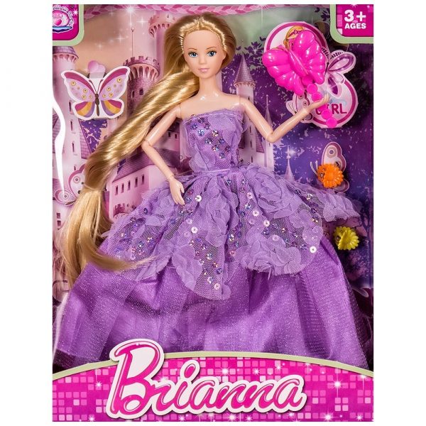 Комплектът съдържа кукла с чупещи се ръце и крака, гребен и фиби за коса.