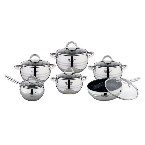 Комплект съдове Zeidan Z-51207, Мраморно покритие, 12 части, Сив - Код G8622