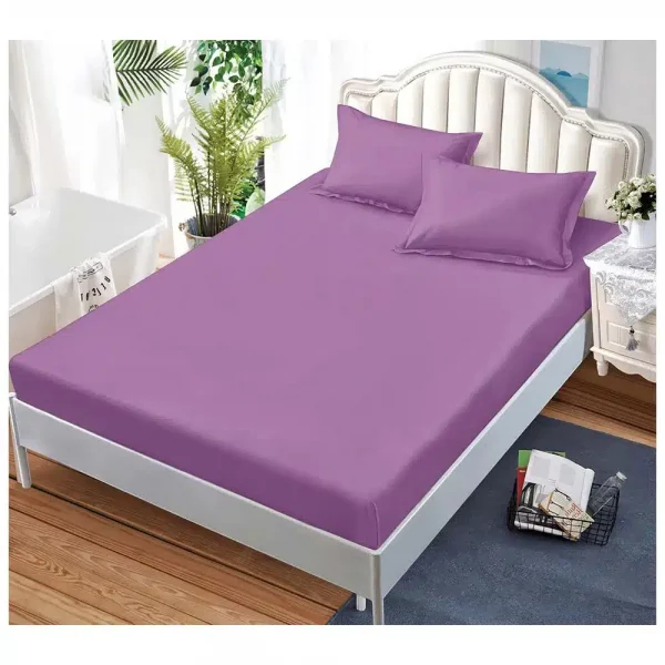 Едноцветен долен чаршаф с ластик и две калъфки, 3 части - Модел S14838