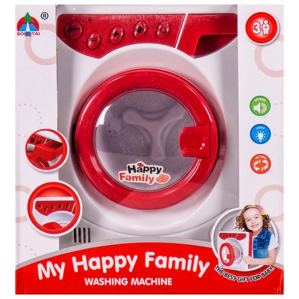 Функции: светещи елементи, звуци на пълнене на барабана на пералнята с вода, звуци на работеща перална машина, въртящ се барабан, отваряеми чекмедже за прах и вратичка за прането.