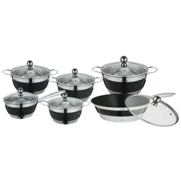 Комплект тенджери Zilner ZL 8117, 12 части, Многослойно дъно, Черен/сребрист - Код G8641