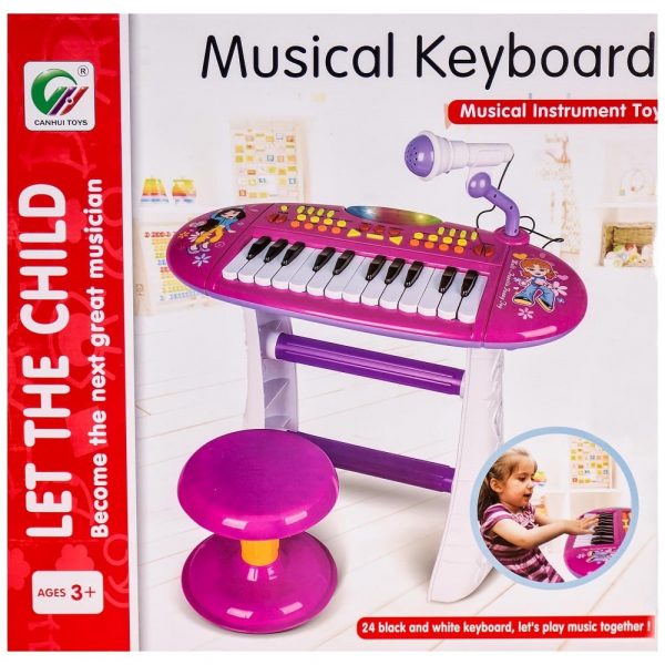Функции: 24 клавиша, 8 вида инструменти, 4 перкусии, 4 вида звуци на животни, демо мелодийки, запис и възпроизвеждане, свирене на зададена от системата мелодия с последователно натискане на клавишите, контрол на темпото, контрол на силата на звука, функция „караоке“, бутон „STOP“ за спиране на текущата функция, бутон „ON/OFF“ за включване и изключване, светещ елемент.