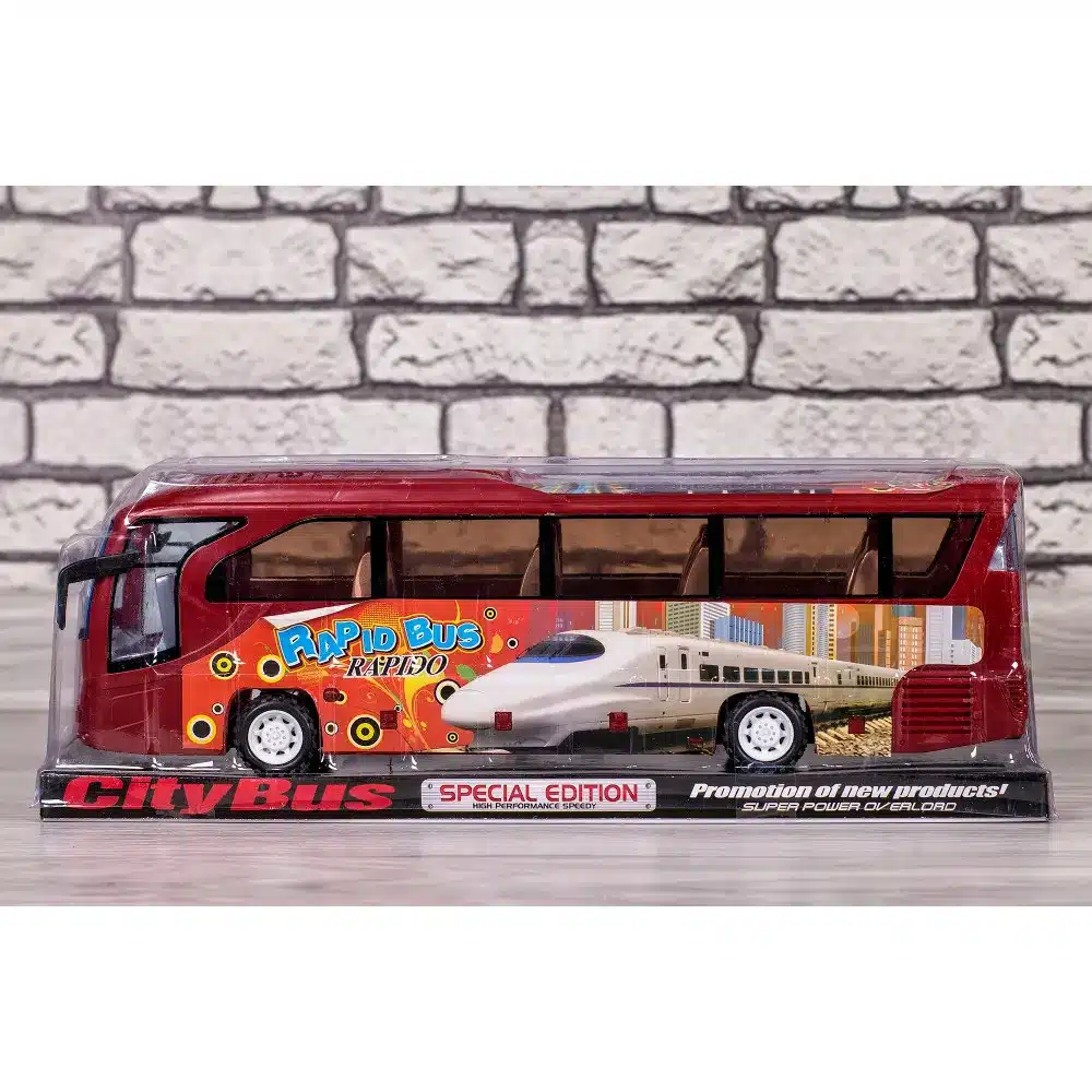 Функции: звуци на запалване на двигател, звуци на работещ двигател, клаксон, музика, светещи фарове, светлинни ефекти (натиснете автобуса отгоре за да активирате функциите).