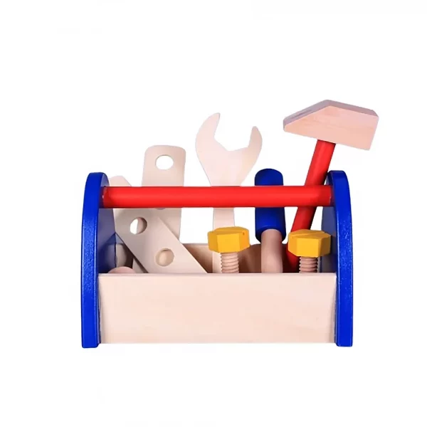 Дървена занимателна играчка с формички за напасване и въженце за дърпане.