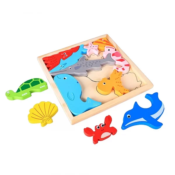 Детски дървен стерео пъзел Морски обитатели - Код W5223