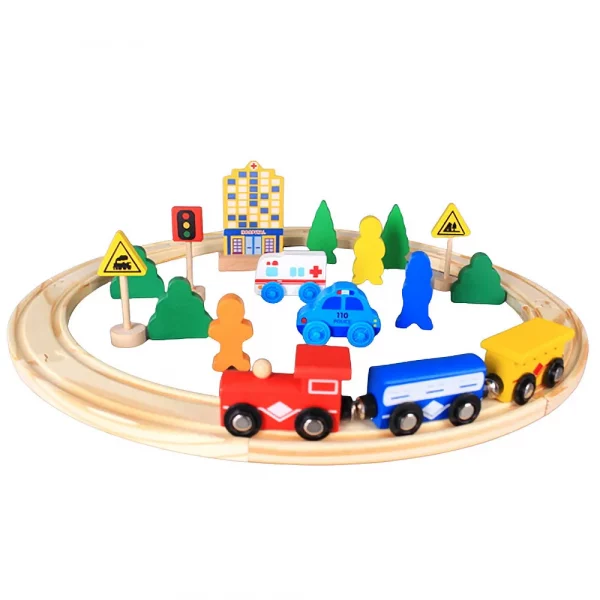 Детски дървен влак с път и ЖП гара (48 части) – Код W5201