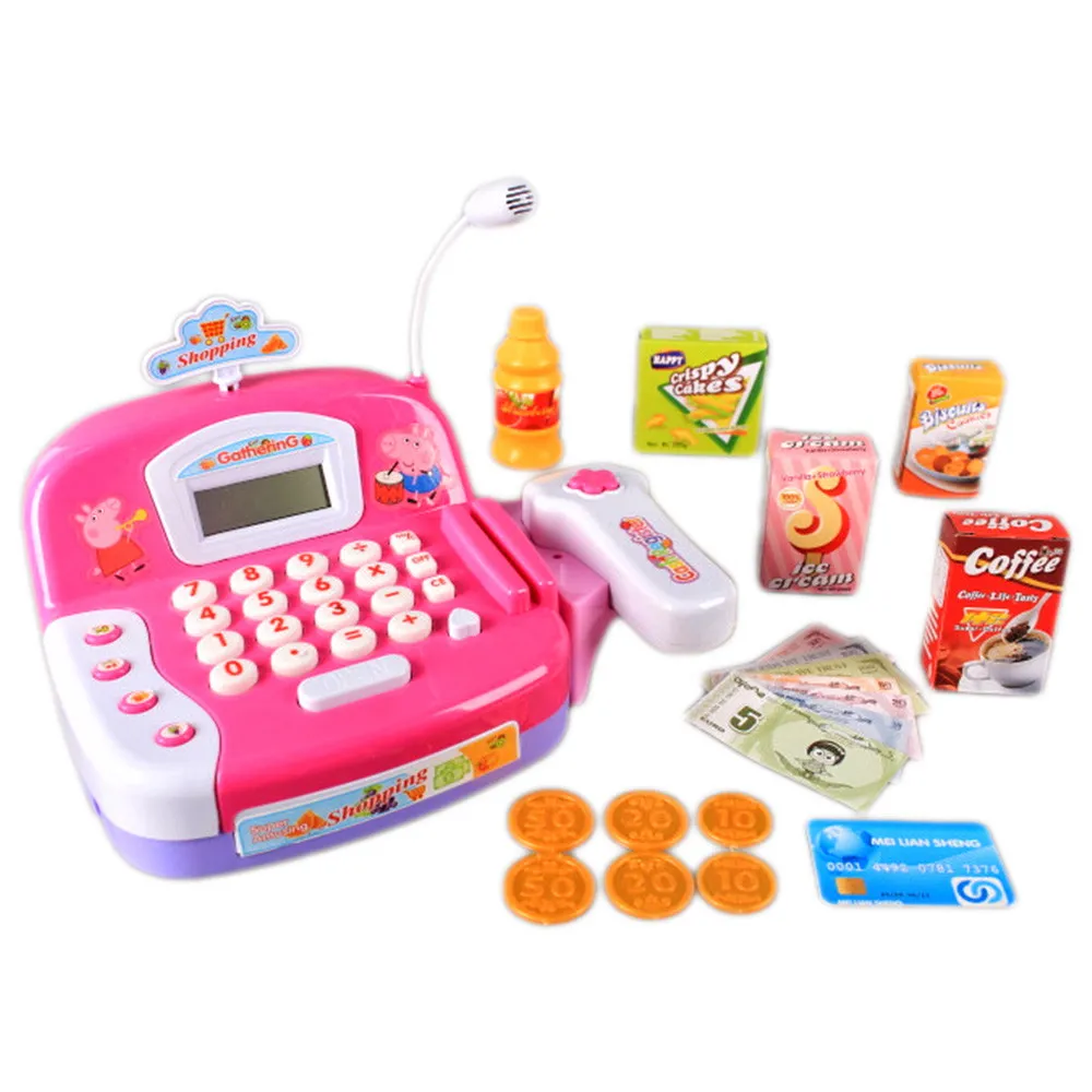 Функции на касовия апарат: действащ калкулатор, действащ микрофон, скенер с реалистичен звук, картов четец със звуков сигнал, отваряемо с бутон чекмедже за пари.