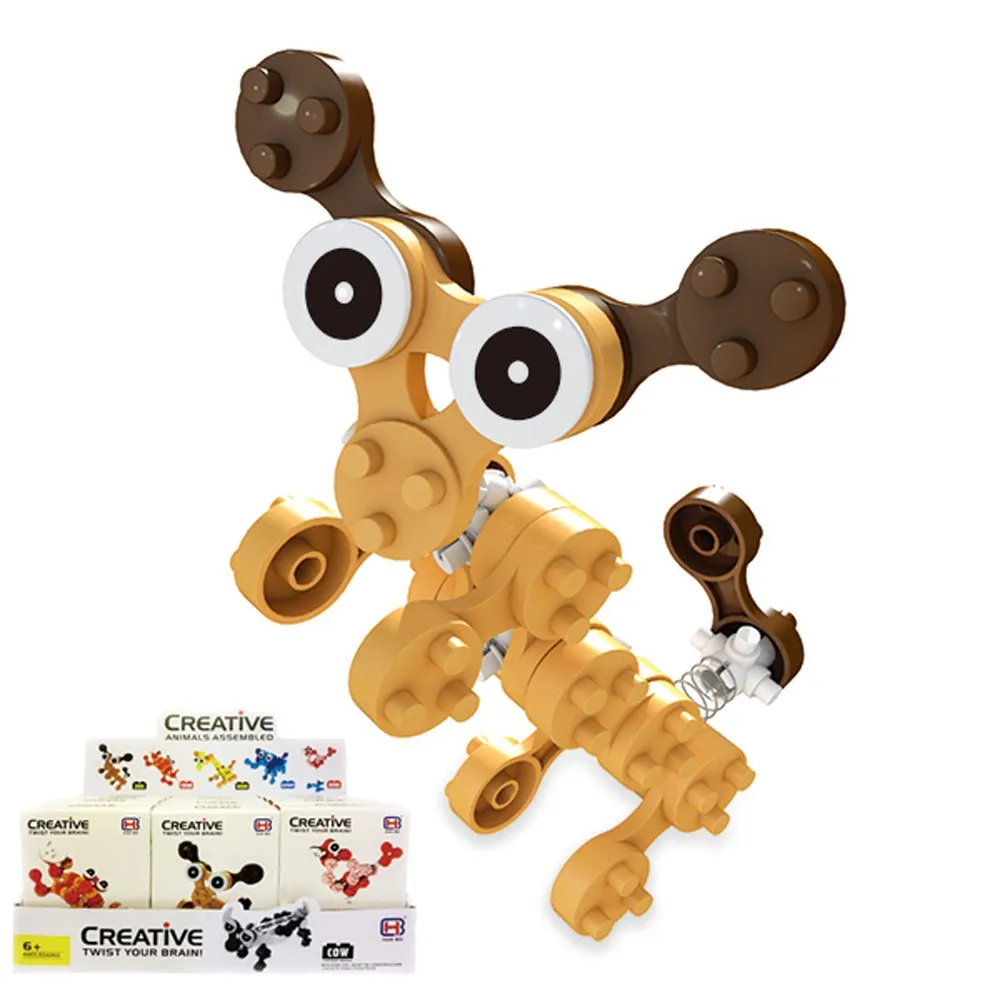 Комплектът съдържа 12 елемента на конструктор за сглобяване на животинка.