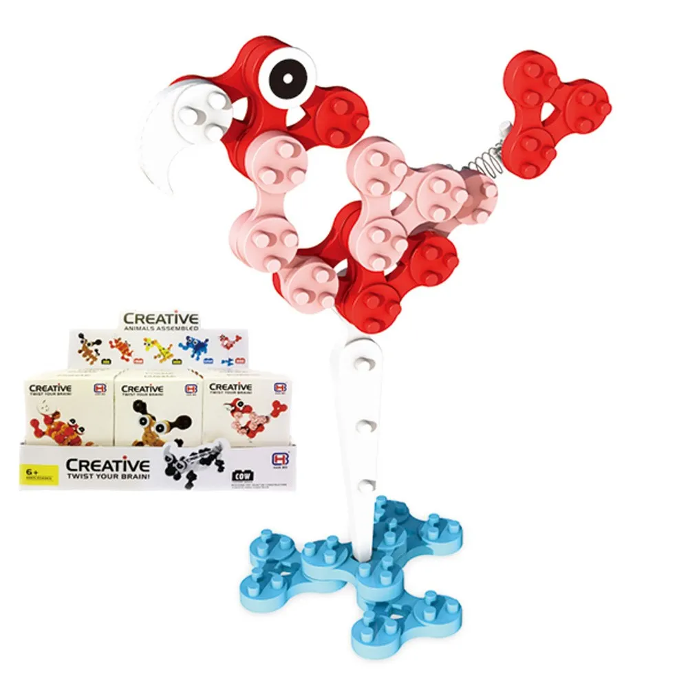 Комплектът съдържа 12 елемента на конструктор за сглобяване на животинка.