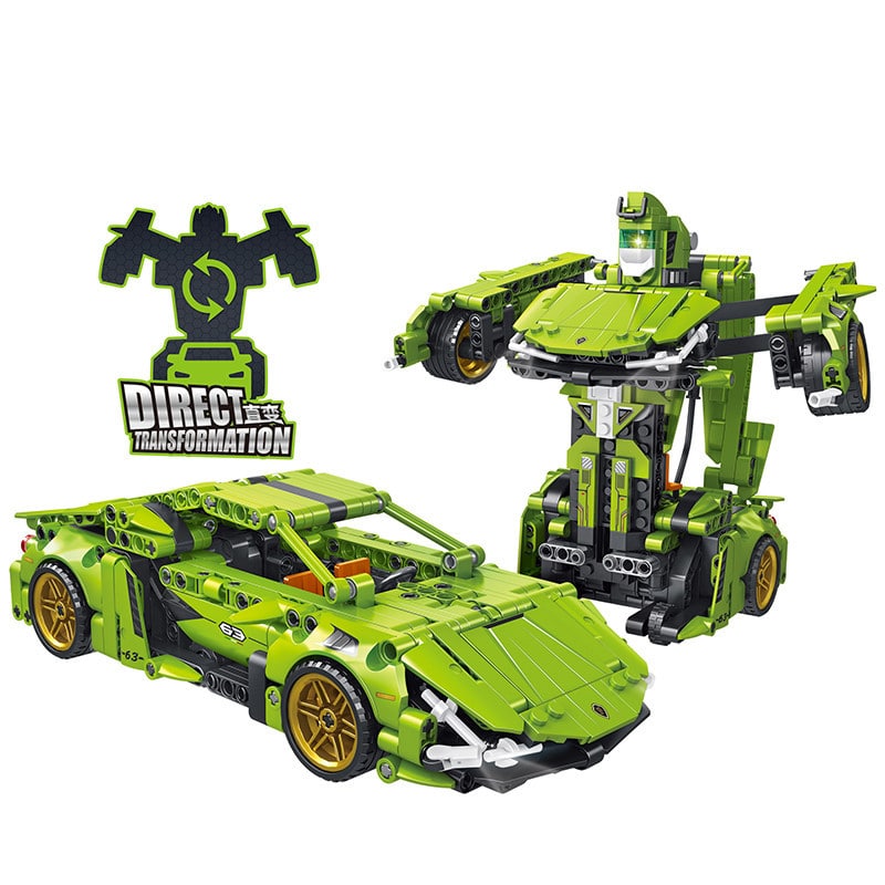 Комплектът съдържа 721 елемента на конструктор за сглобяване на трансформер кола – робот.