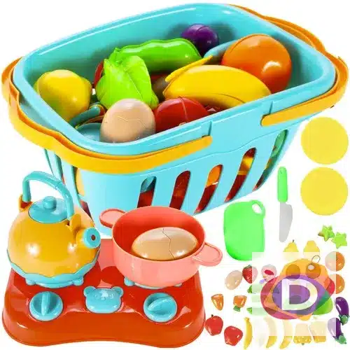 Детски комплект плодове и зеленчуци за рязане в кошница - Код D2202