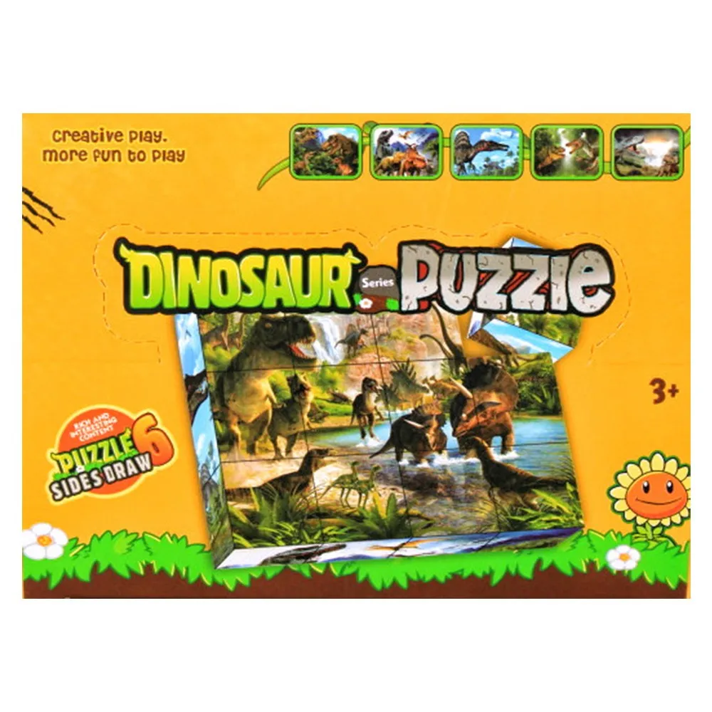 Възможност за подреждане на шест различни картинки, изобразяващи динозаври (вижте гърба на кутията).