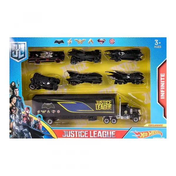 Детски метален комплект камион и 6 коли - Код W3396