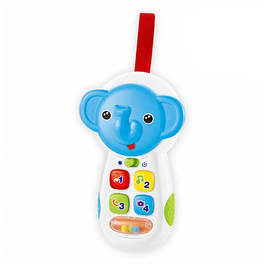 Функции: забавни мелодийки, забавни звуци, звук на снимане, звук на телефонно избиране, звук на звънене, светещ елемент, огледалце, бутон за включване и изключване.