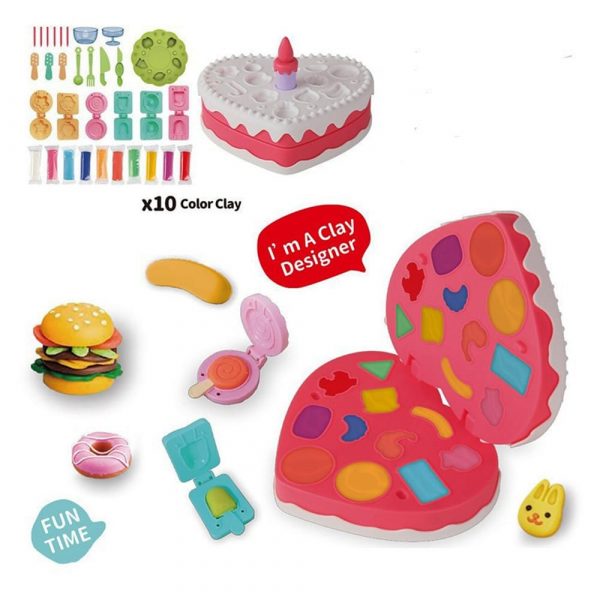 В комплекта ще намерите 6 цвята моделин, формички, съдове, машина с формата на локомотив и прибори за моделиране, които ще направят процеса на създаване на ястия лесен и вълнуващ.