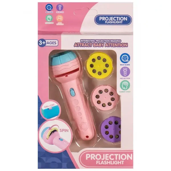 Комплектът съдържа проектор с лампичка и три диска с общо 24 картинки за проектиране.