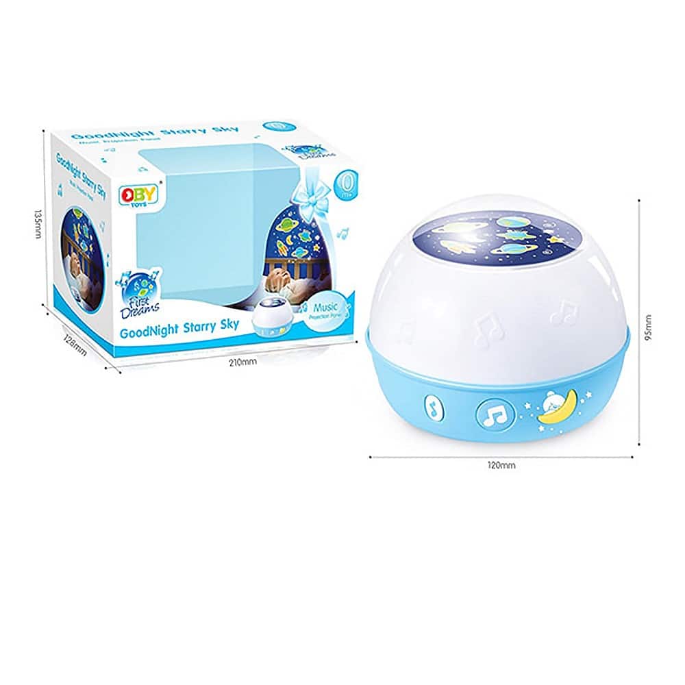 Функции: проектира на тавана звездно небе, успокояващи приспивни мелодии, сменящи се светлини, бутон за звуци на животни.