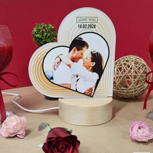 Светеща акрилна рамка във формата на сърце с Ваша снимка