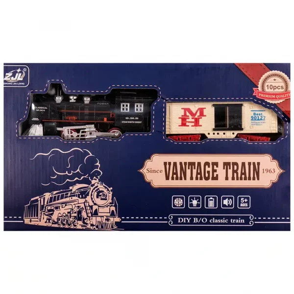 Комплектът включва: сглобяеми релси, локомотив, един товарен вагон.