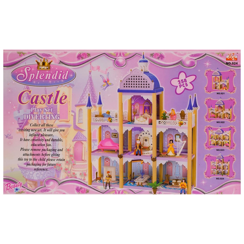 Комплектът съдържа елементи за сглобяване на замък с обзавеждане, пет фигурки на хора и аксесоари.