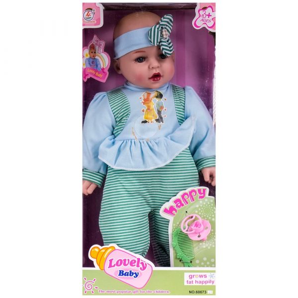 Комплектът съдържа бебе с височина 40 см, шишенце за хранене, гърненце, биберон, докторски слушалки, спринцовка, очила, термометър.
