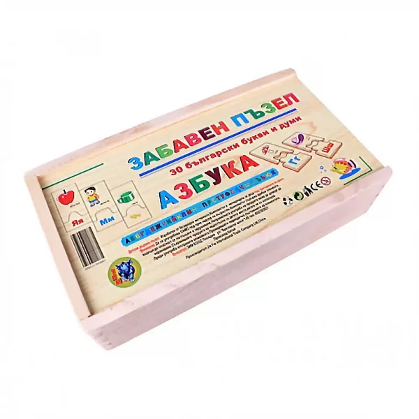 Детски дървен пъзел с българска азбука (60 елемента) - Код W4562
