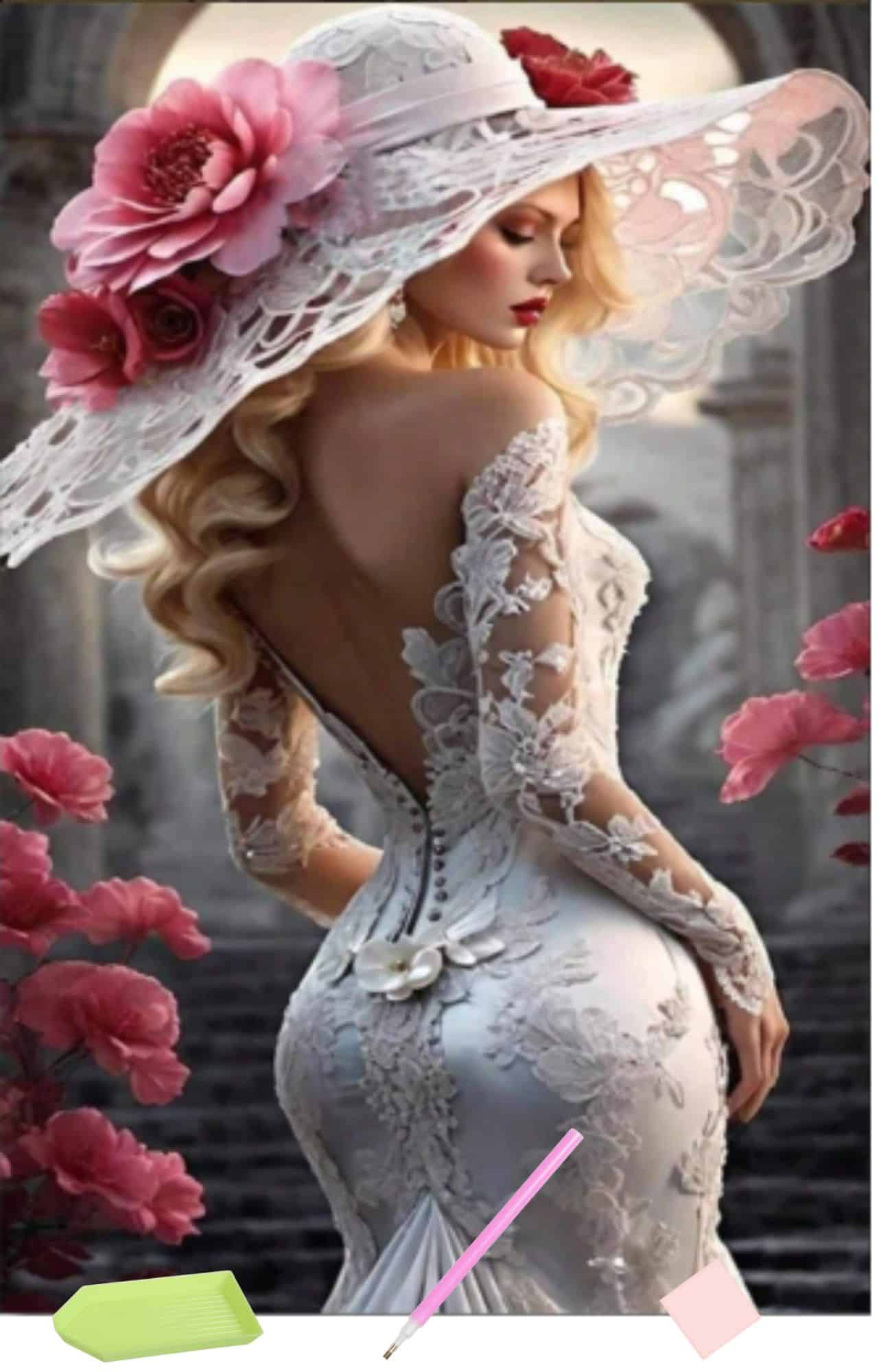 Диамантен гоблен Дамата в бяло, 30×40см – Код D20233