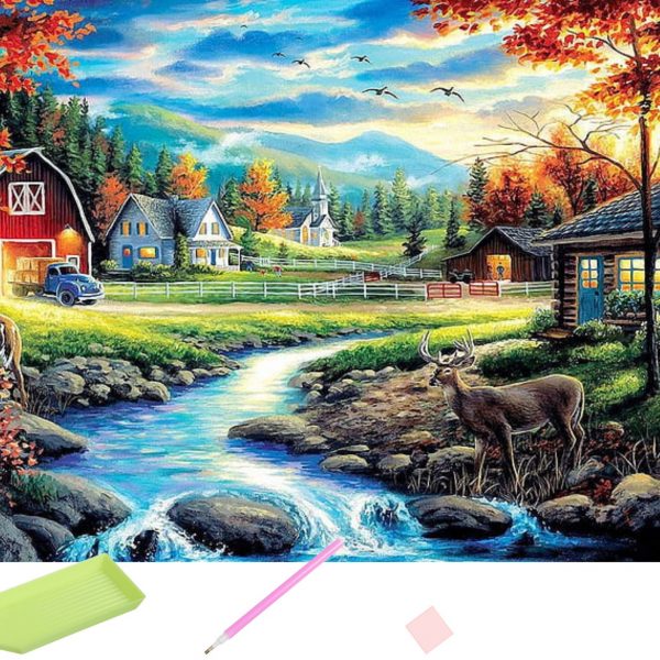 🎨 Диамантен гоблен „ Къщата край езерото“ – създайте блестящо произведение на изкуството! ✨