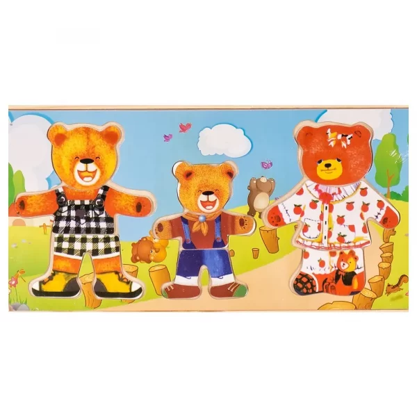 Дървен пъзел "Семейство мечета с дрехи" - Код W3019