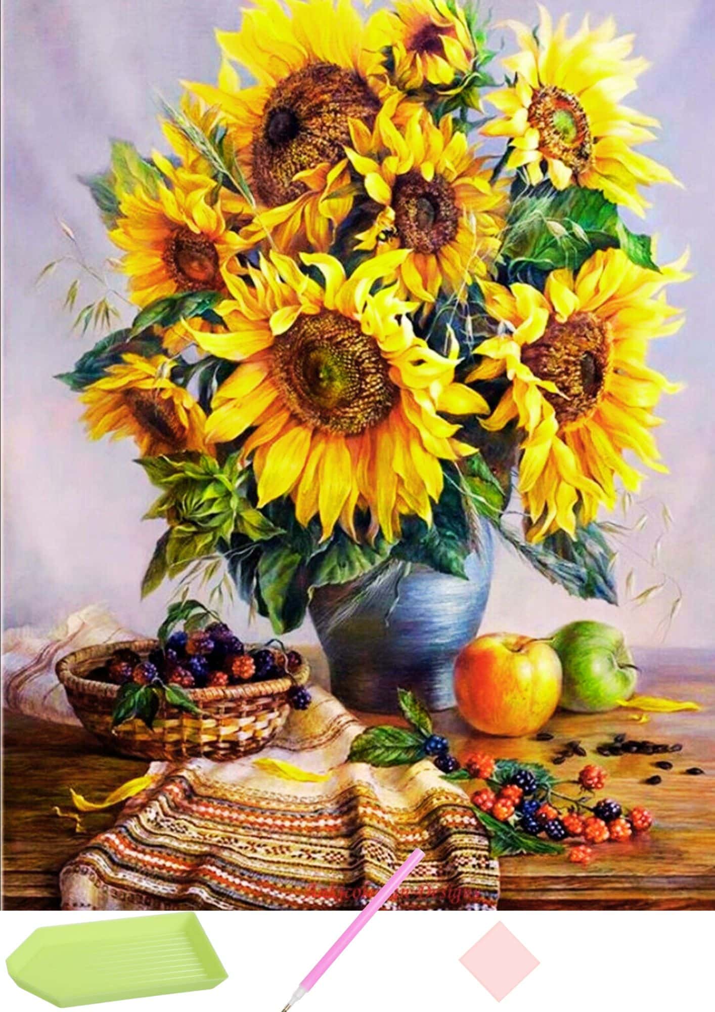 🎨 Диамантен гоблен „Слънчогледи и плодове“ – създайте блестящо произведение на изкуството! ✨