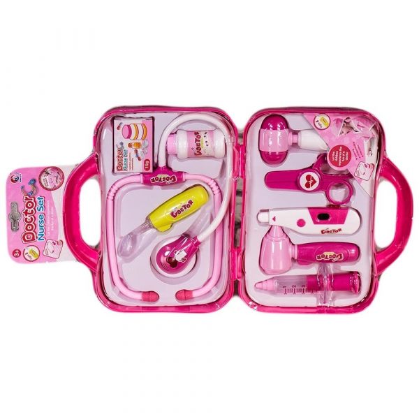 Комплектът съдържа куфарче, светещ стетоскоп с реалистичен звук, спринцовка с пружинка, ножичка, отоскоп, чукче, очила и други аксесоари.