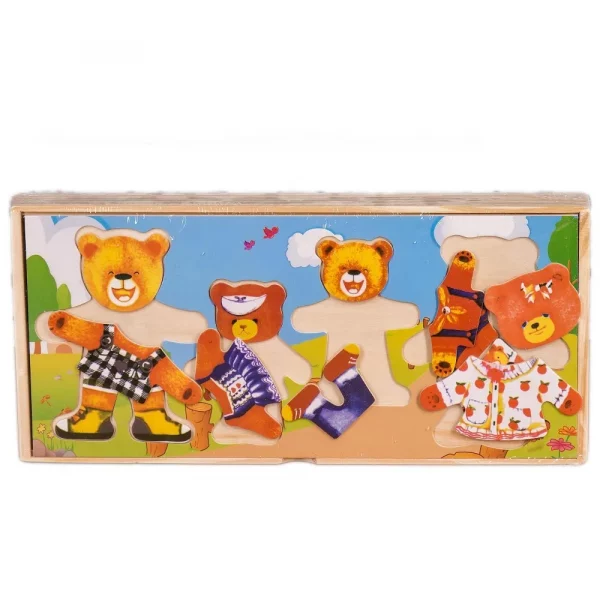 Дървен пъзел "семейство мечета с дрехи" - Код W3037