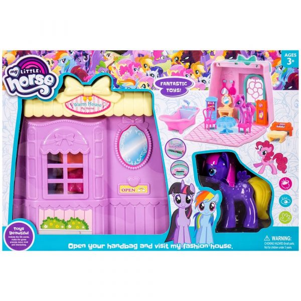 Комплектът съдържа дворец, конче с каляска, фигурки на принц и принцеса, обзавеждане и аксесоари.