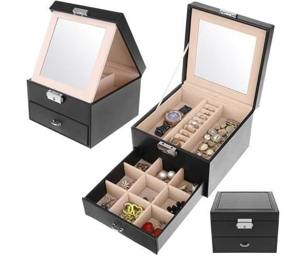 Кутия за бижута 8898 с огледало, 2 нива - Код D995