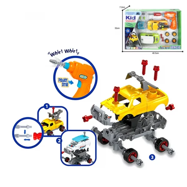 Комплект джип с 3 дизайна и винтоверт за разглобяване и сглобяване - Код W4102