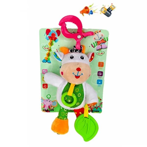 Плюшена кравичка с щипка, дрънкалка за количка - Код W4072