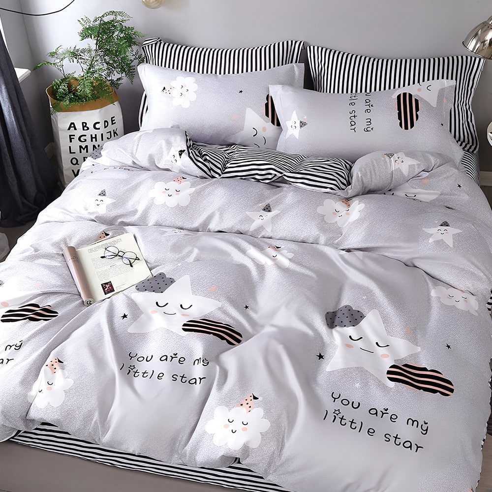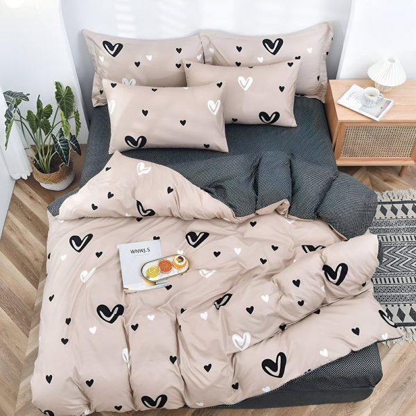 Двулицево спално бельо с ластик (размер за приста), 4 части – Модел S17009
