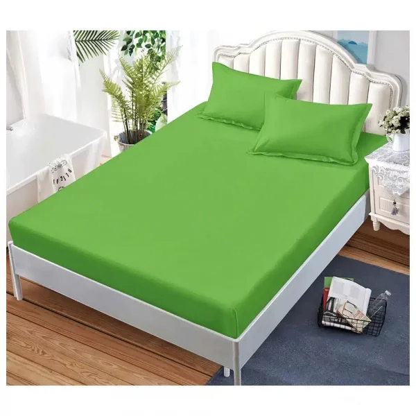 Едноцветен долен чаршаф с ластик и две калъфки, 3 части – Модел S14834