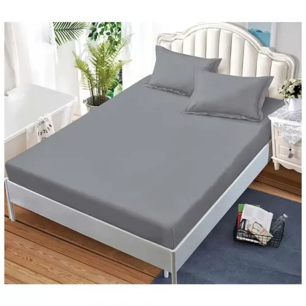 Едноцветен долен чаршаф с ластик и две калъфки, 3 части – Модел S15093