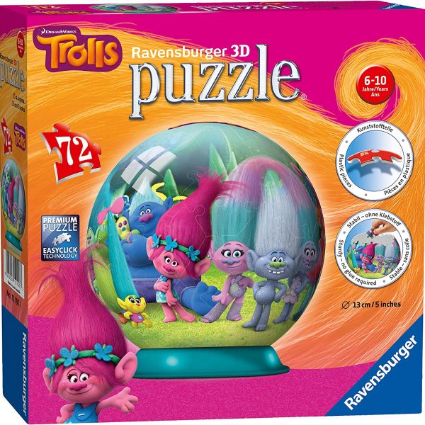 3D Пъзел Ravensburger 72 части Тролчетата – Сферичен пъзел за деца 6+(Код D933) Original price was: 19.00 лв. / 9.71 €.Текущата цена е: 16.50 лв. / 8.44 €.